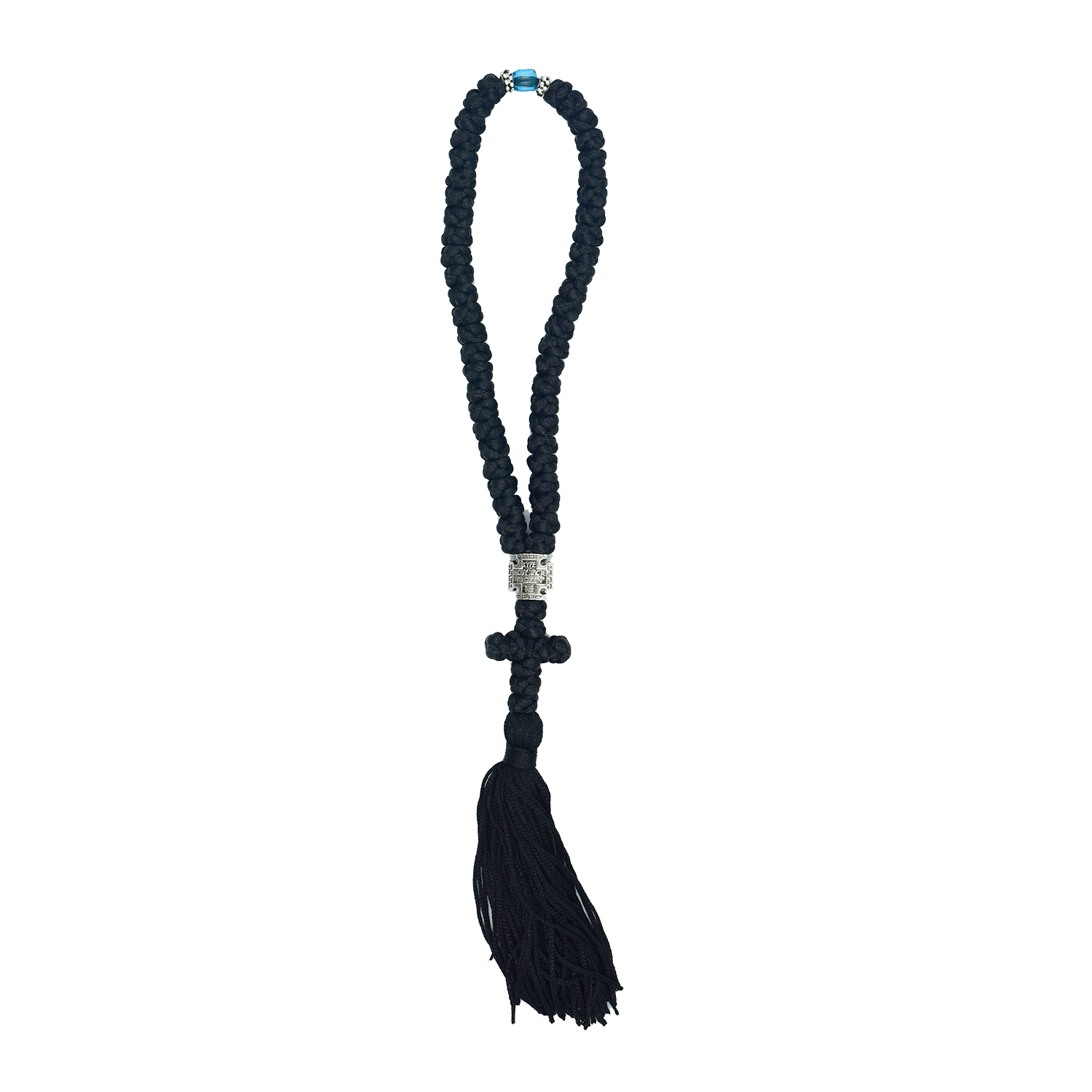 Κομποσχοίνι 50άρι Με Φούντα Μεταλικό Σταυρό Και Μπλέ Χάντρα.