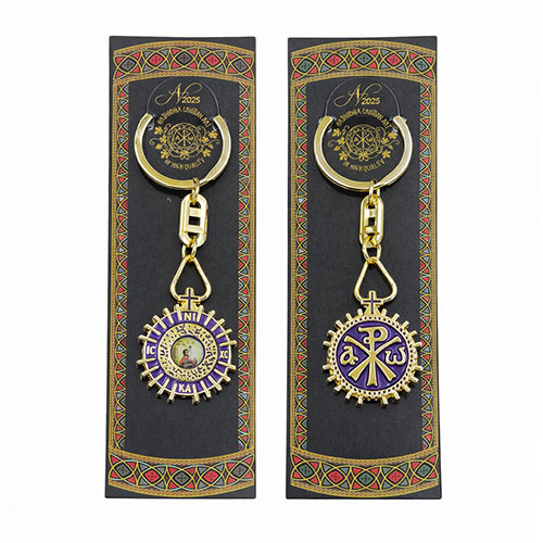 Χειροποίητη μπρελόκ-κλειδοθήκη, ευλογημένη με την παρουσία του Αγίου Χριστοφόρου ή άλλων Αγίων.